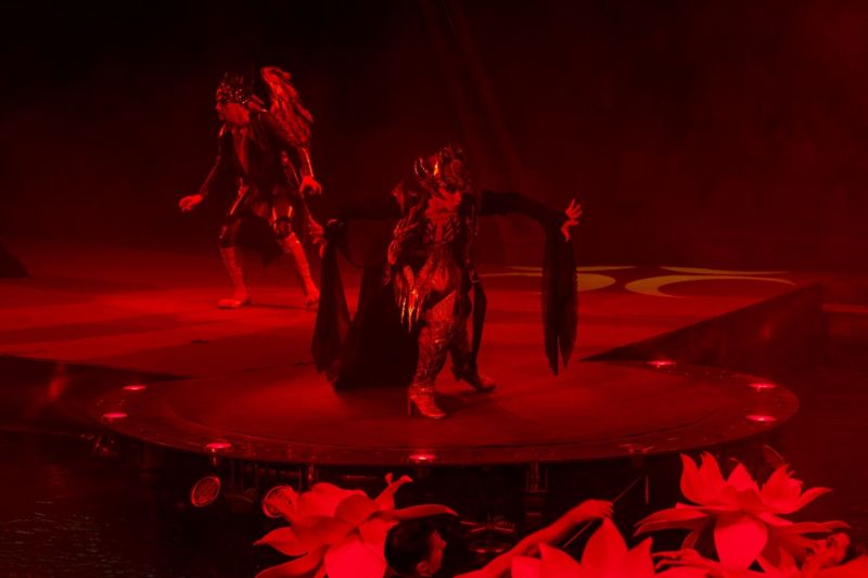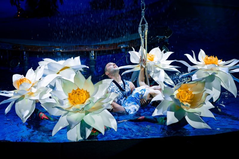 Трюки воздушных пантер кружат головы, прыжки в воду акробатов захватывают дух, водно-воздушные этюды гимнастов на ремнях и полотнах вносят атмосферу нереальности, а обрывы гимнаста на мачте щекочут нервы. Грациозные русалки, шоу балет, фигуристы.