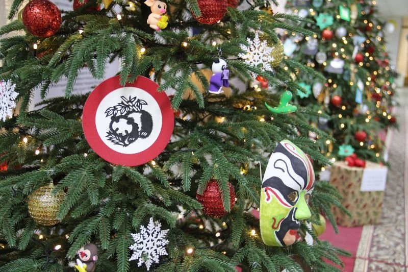 На выставке представлены елки, украшенные авторскими игрушками детей из городов-побратимов Перми - Амневиля-ле-Терм (Франция), Дуйсбурга (Германия), Оксфорда (Великобритания), Луисвилля (США), Агридженто (Италия), Циндао (КНР).