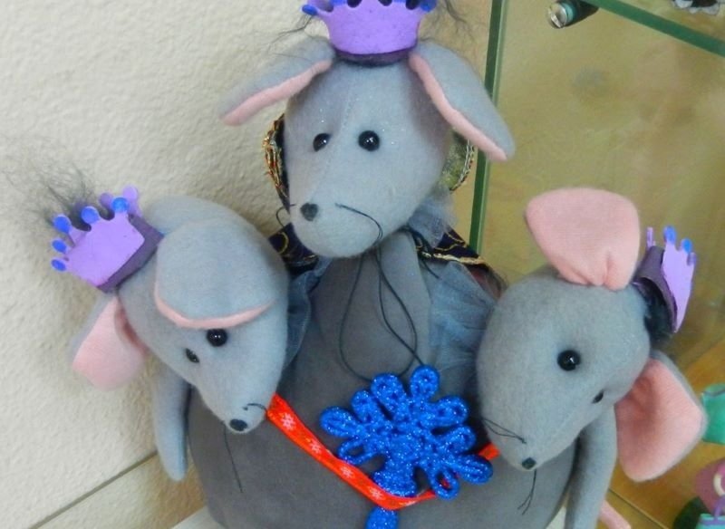 На выставке представлены мягкие игрушки - крысы и мыши, связанные крючком и сшитые по разным выкройкам.